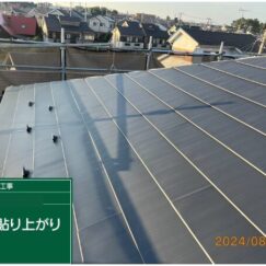 今回の工事により屋根の耐久性は向上され、意匠性も得られました。屋根は塗装工事と屋根修理どちらを行えばいいのか、悩まれる方も多いと思います。屋根塗装はコストを抑えることが可能ですが、屋根修理は長い耐久性が保証されます。どちらにもメリットがありますが、いつかは屋根材の寿命も訪れてしまいます。カバー工法であれば既存の屋根材をそのままに施工を行えるため、葺き替え工事を行うよりも、コストを抑えることが可能です。それには、下地である既存の屋根材が関わってくるため、早め早めの屋根修理が必要です。