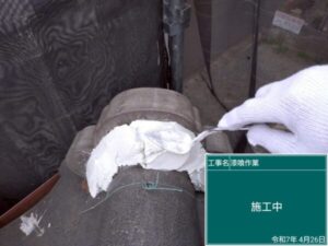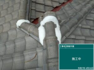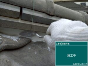 こちらの施工部位は、棟の「のし瓦」という薄く積み重ねた瓦の下。