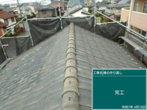 さいたま市緑区にて屋根修理〈漆喰補修・棟の積み直し〉の施工後写真